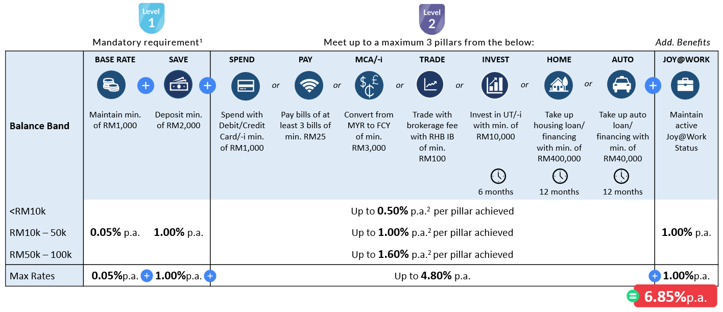 2 Applicable to customers who increased an their balances of more than RM1,000 compared to previous month to entitle for an additional 0.20%p.a.